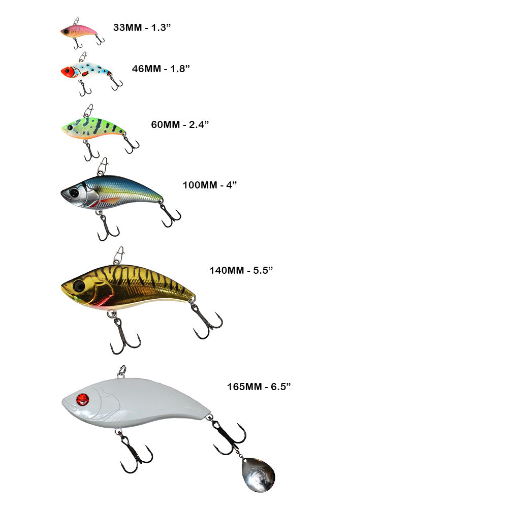 This rattlebait has a loud menacing vibration when ripped hard, a wandering vulnerable body-roll when jigged slowly, and a bold bronco tail-kick when pounded on the spot. We haven't really found a wrong way to work this lure yet. We have unique color patterns for covering all fishing conditions and serve this bait with a compact snip snap and premium black nickel treble hooks to tame any temper.